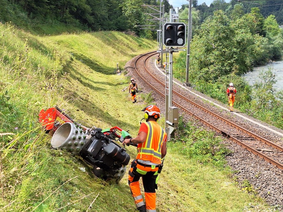 Für eine möglichst hindernisfreie Fahrt der Züge ist die Pflege und der Unterhalt der Bahn-Böschungen sehr wichtig.